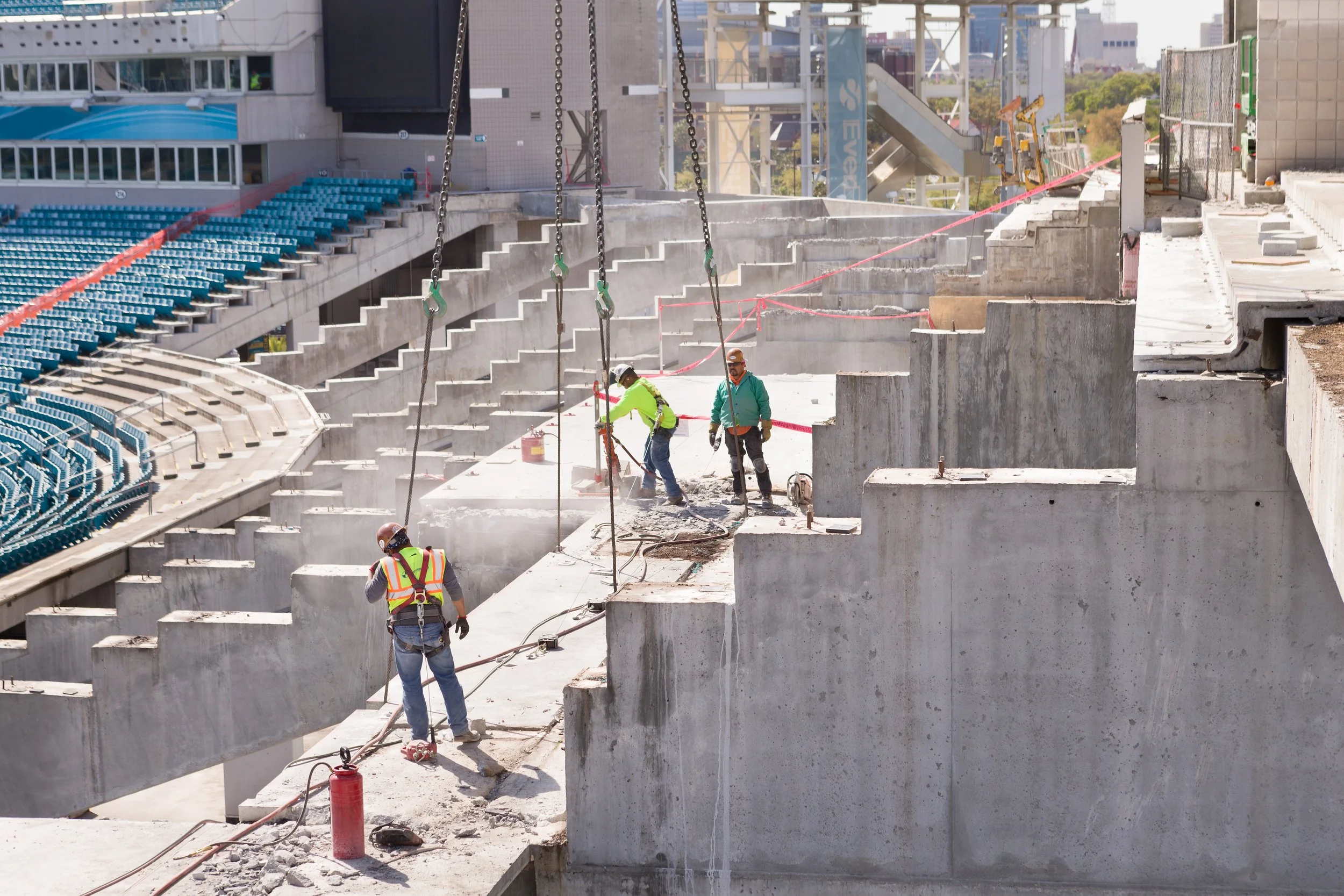 Removing damaged sections of concrete roadways, parking structures, and bridge decks for replacement.